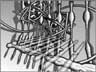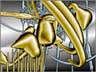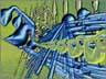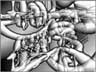| In 1990 I invited the managing director of Borland, then Philippe Khan, to visit the University too see whether he would like to sponsor my work. He was kind enough to come and see us, but did not want to take the idea of sponsorship further. All the work on show, which was given the title 'Memories, Rotations, Reflections', was produced through programmes written in Borland C, one of the software packages that had made Borland a success. I used 8-bit TV framestore hardware, generating a series of images that were to form the basis of the later ray-traced work. The last image in this set is one of the very first ray-traced images --- all the rest were rendered using my own software developed from the work of Kenneth Knowlton. |