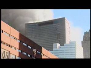 Jones: “Correct – the WTC Towers were designed to withstand forces caused by large commercial aircraft – we can agree on that. MIT’s Thomas Eagar also concurs “because the number of columns lost on the initial impact was not large and the loads were shifted to remaining columns in this highly redundant structure” (Eagar and Musso, 2001).” Jones is stating here a widely circulated opinion: that the Towers were designed to withstand the impact of a commercial plane. But the CD theorists consistently overlook two factors here. Firstly that the designers had in mind an aircraft coming in to land at New York airport, at speeds of around 180 mph (according to the FEMA report, page 1:17). But the aircraft hit the towers at an average of nearly three times that speed. Given that the impact damage hinges on the kinetic energy of the projectile, which rises with the square of speed, the planes hit the Twin Towers with nearly nine times the impact anticipated. (Note that the NIST report - on page 6 - contradicts this argument by stating that the Towers were designed for a 600 mph impact. I would be pleased to hear from anyone who can settle this discrepancy one way or the other.) Secondly, design is an art not a science: the Titanic was designed not to sink; the space shuttle was designed not to explode on takeoff, and designed not to break up on re-entry. Etc. Jones: “They do NOT explain how steel-column temperatures above 800oC were achieved near-simultaneously due to burning office materials. NIST notes that office materials in an area burn for about 15-20 minutes, then are consumed away (NIST, 2005, pp. 117, 179). This is evidently not long enough to raise steel column temperatures above 800oC as required in the Bazant & Zhou model, given the enormous heat sinks of the structures. And to have three buildings completely collapse due to this unlikely mechanism on the same day strains credulity.” Jones is presenting perhaps the core issue that requires explanation: the high temperatures in all three fires. What the CD theorists consistently attempt to promote however is that the fires in the three buildings were standard ‘office fires’ which should not have led to collapse. This is simply not the case. In the case of the Twin Towers the impact and presence of the planes ensures that the structural damage and ensuing fires were like nothing previously encountered. Some images are essential here to convey the magnitude of the situation.